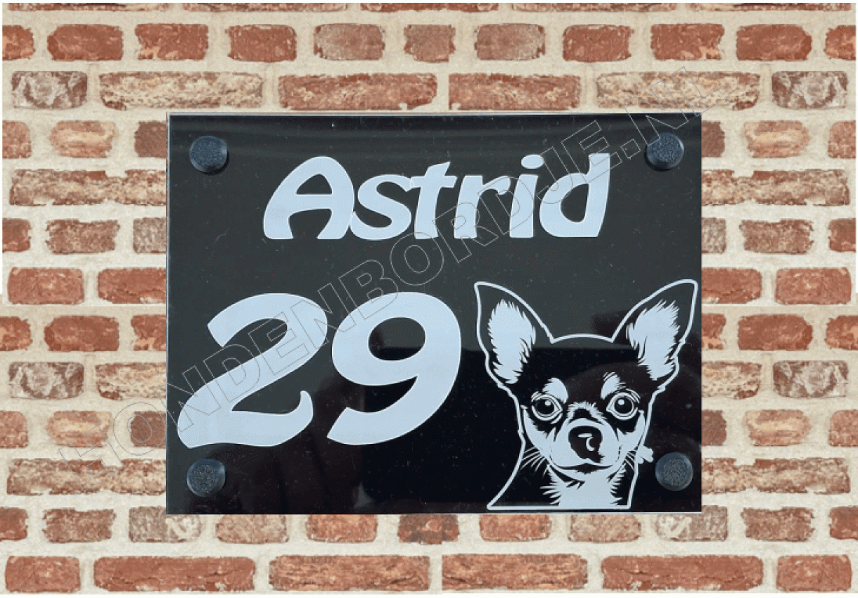 Gepersonaliseerd met naam en/of nummer, perfect als persoonlijke toevoeging aan je woning of als cadeau voor hondenliefhebbers.