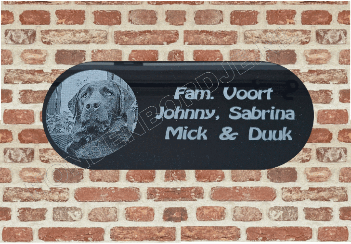U krijgt eerst een ontwerp ter goedkeuring per mail, pas na akkoord wordt uw naambord gemaakt.