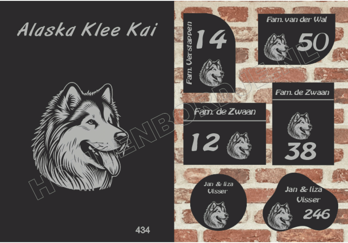 dit product is uitgesloten van het herroepingsrecht i.v.m. de persoonlijke aard.Naambord Alaska Klee Kai