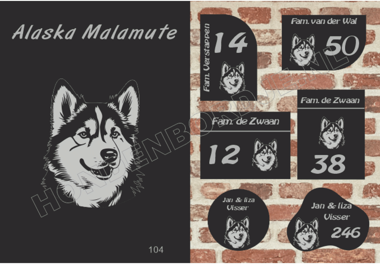 dit product is uitgesloten van het herroepingsrecht i.v.m. de persoonlijke aard.Naambord Alaska Malamute