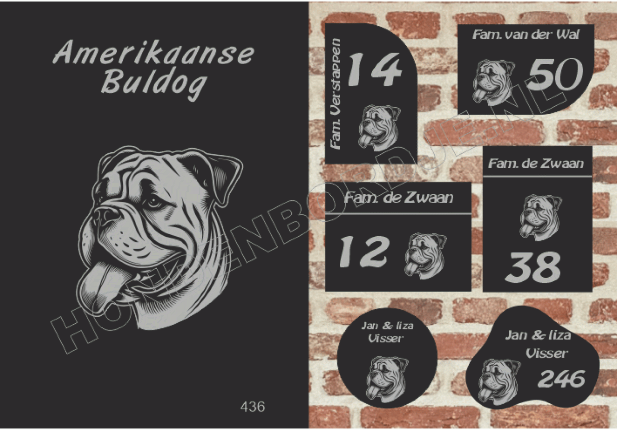 Naambord met Amerikaanse Buldog.