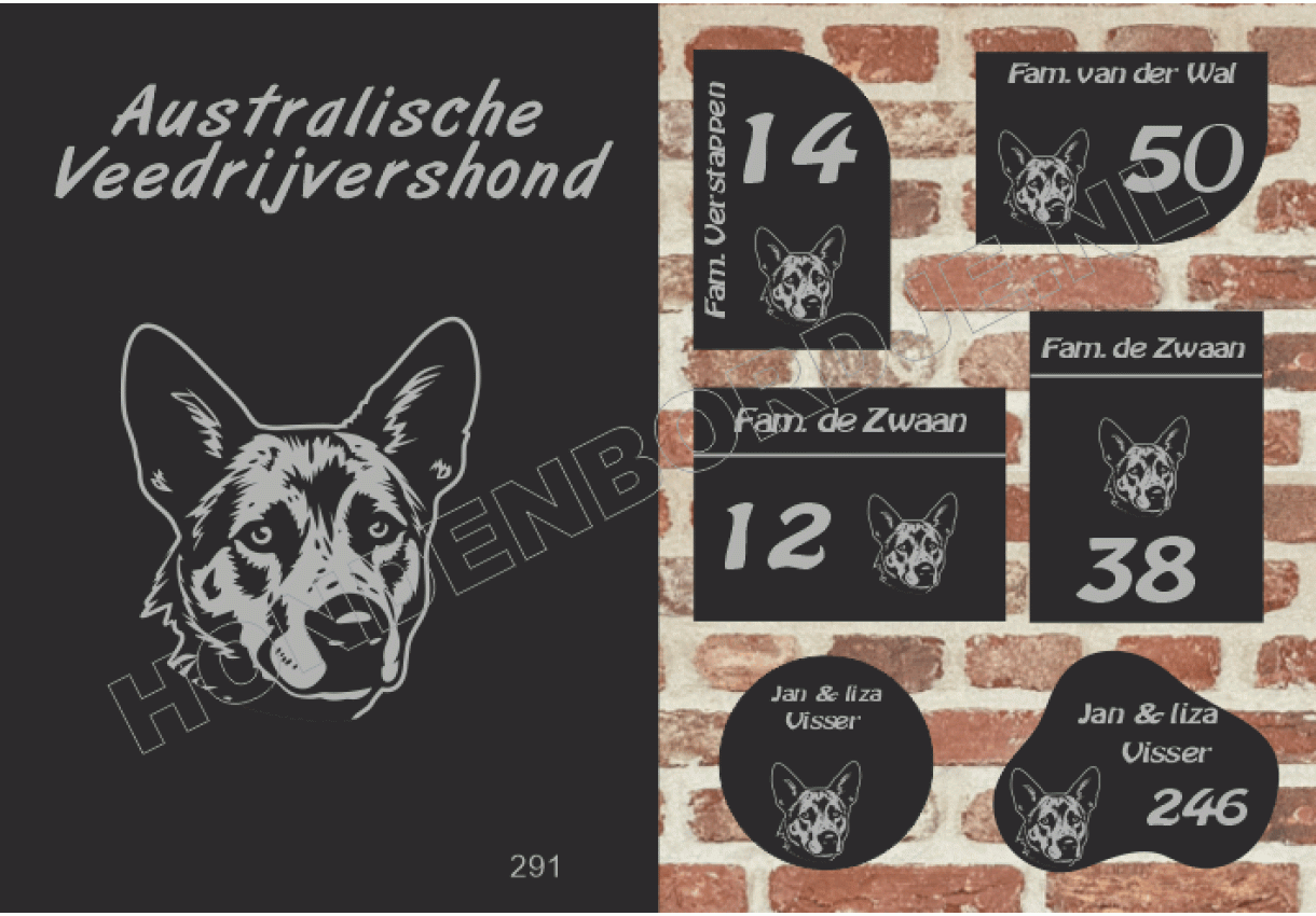Naambord met Australische Veedrijvershond.