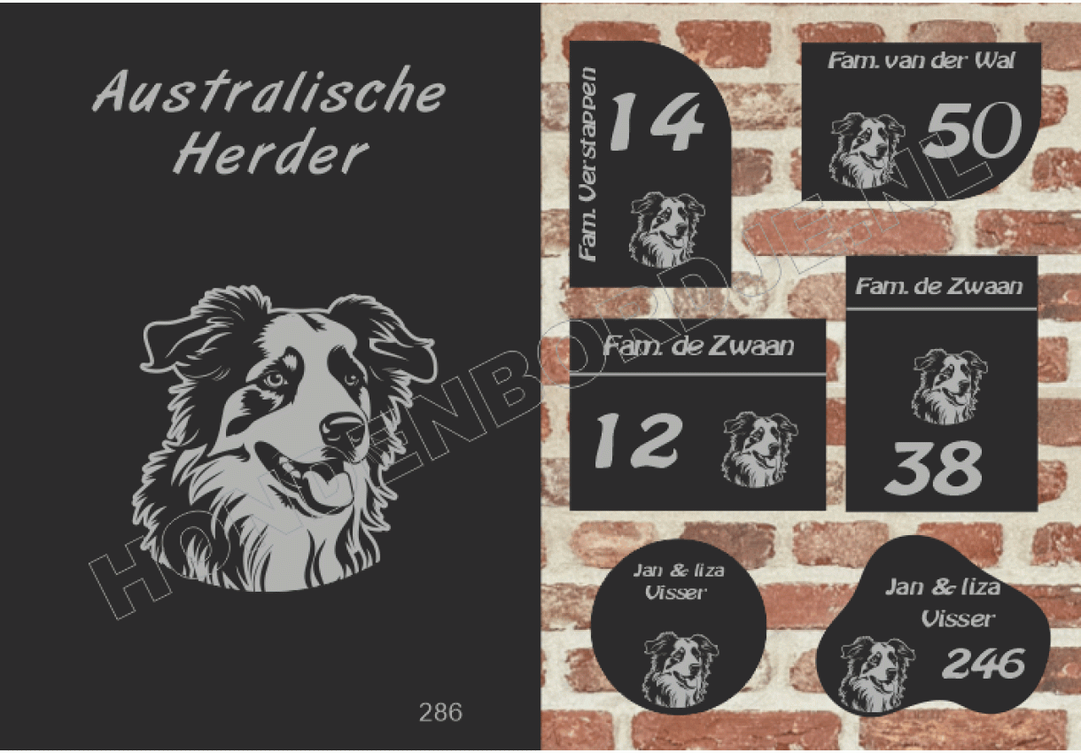 dit product is uitgesloten van het herroepingsrecht i.v.m. de persoonlijke aard.Naambord Australische Herder