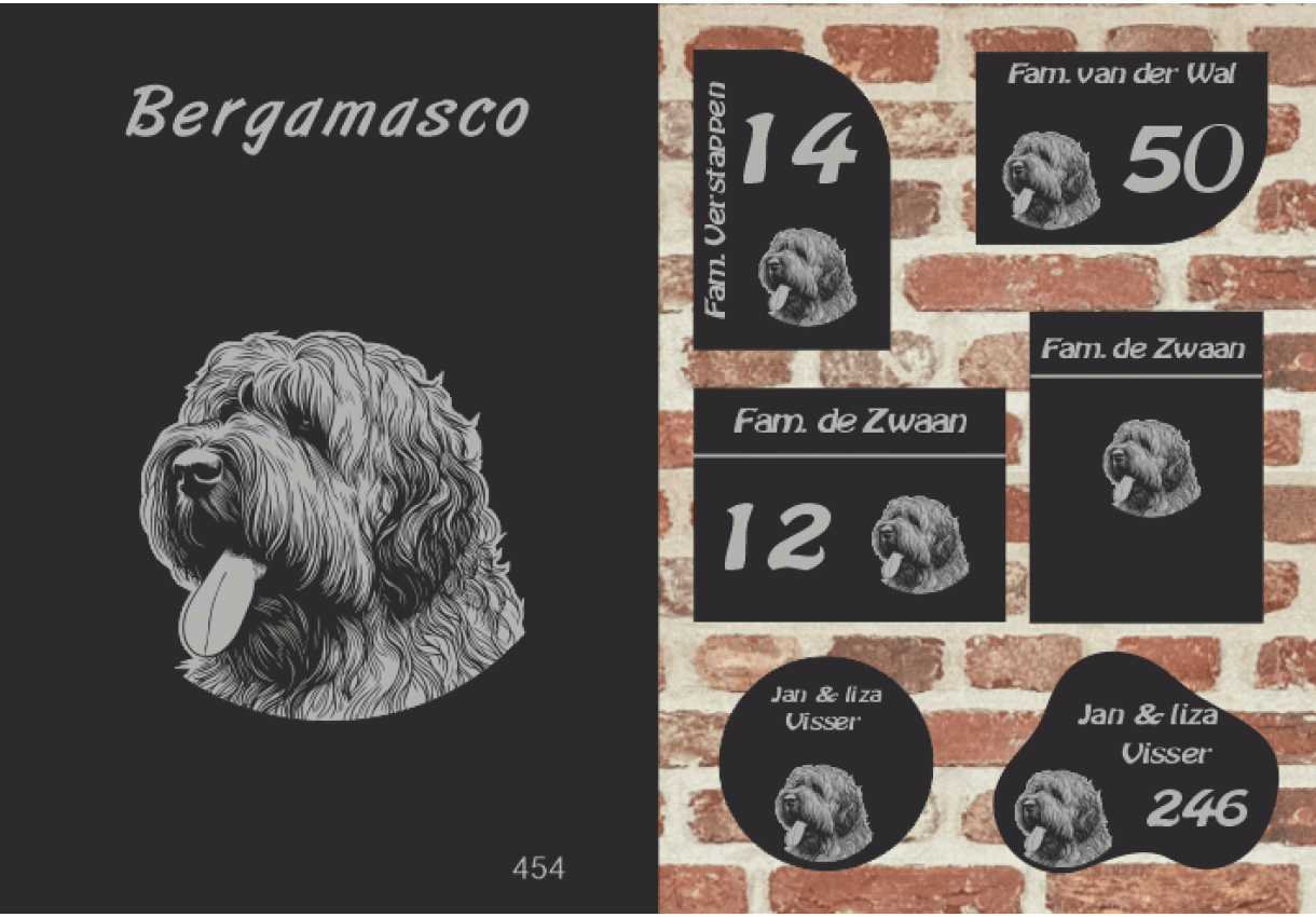 dit product is uitgesloten van het herroepingsrecht i.v.m. de persoonlijke aard.Naambord Bergamasco