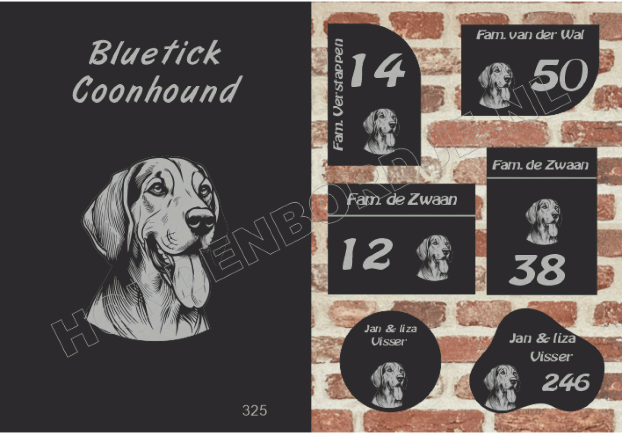 dit product is uitgesloten van het herroepingsrecht i.v.m. de persoonlijke aard.Naambord Bluetick Coonhound