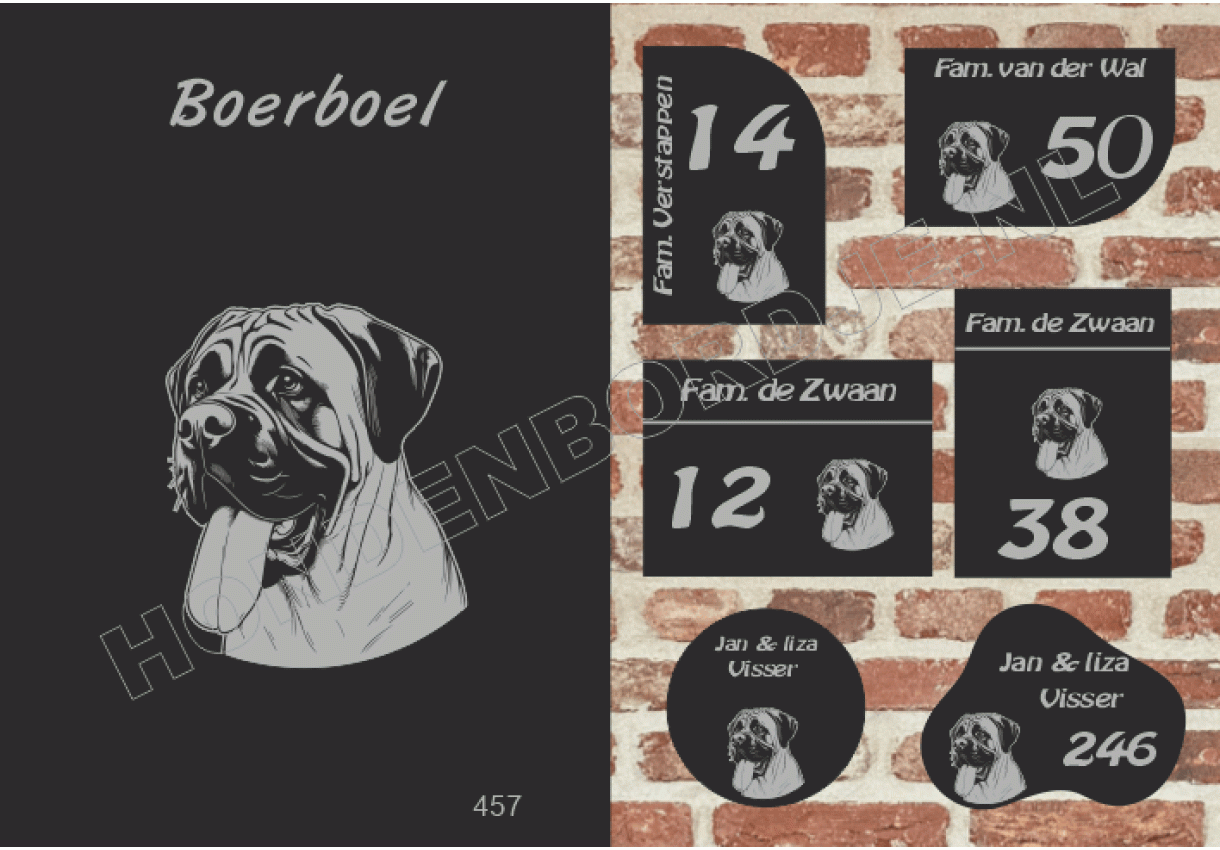 Gepersonaliseerd met naam en/of nummer, perfect als persoonlijke toevoeging aan je woning of als cadeau voor hondenliefhebbers.