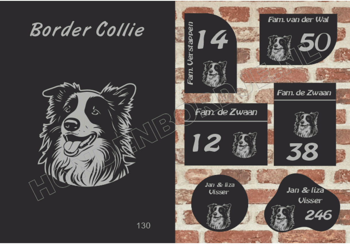 dit product is uitgesloten van het herroepingsrecht i.v.m. de persoonlijke aard.Naambord Border Collie