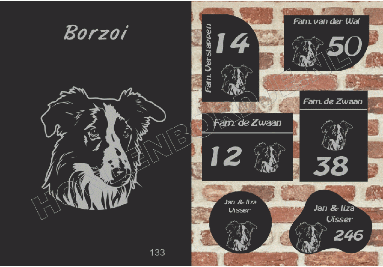 dit product is uitgesloten van het herroepingsrecht i.v.m. de persoonlijke aard.Naambord Borzoi