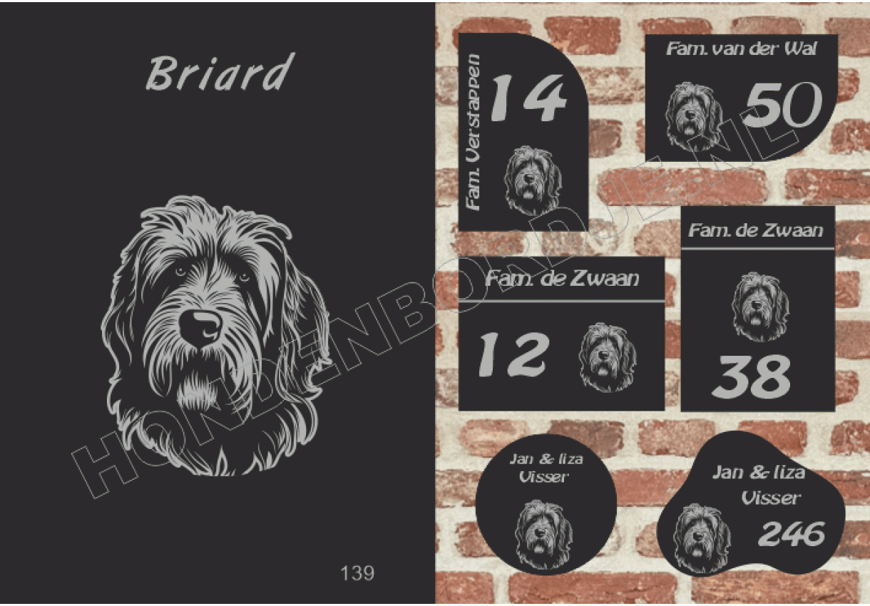 Naambord met Briard.