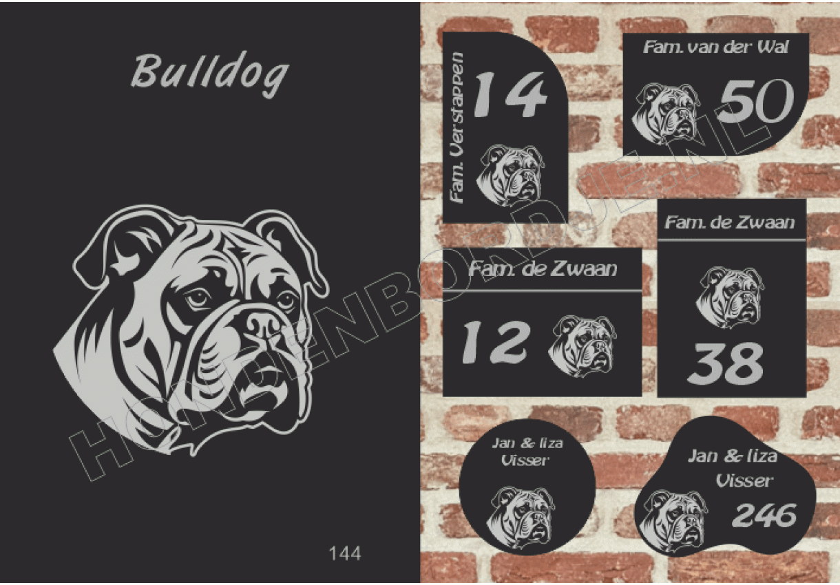 dit product is uitgesloten van het herroepingsrecht i.v.m. de persoonlijke aard.Naambord Bulldog