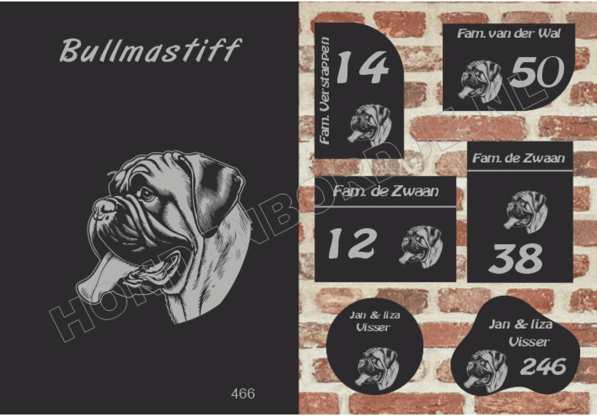 dit product is uitgesloten van het herroepingsrecht i.v.m. de persoonlijke aard.Naambord Bullmastiff
