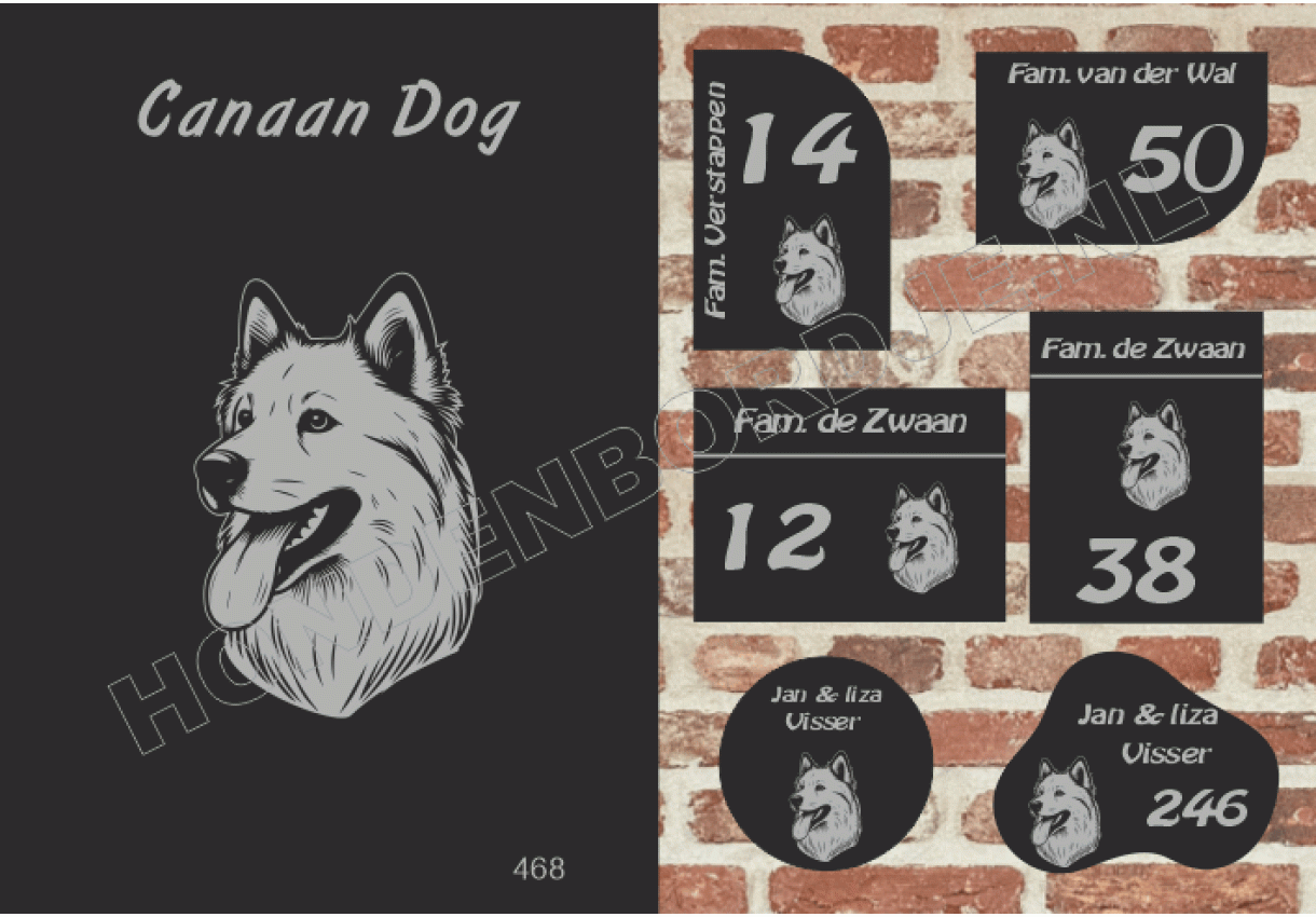 Naambord met Canaan Dog.