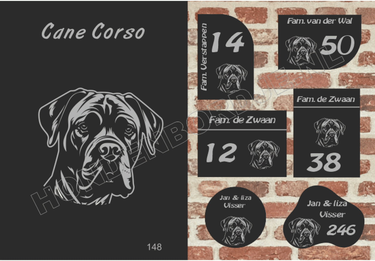 dit product is uitgesloten van het herroepingsrecht i.v.m. de persoonlijke aard.Naambord Cane Corso