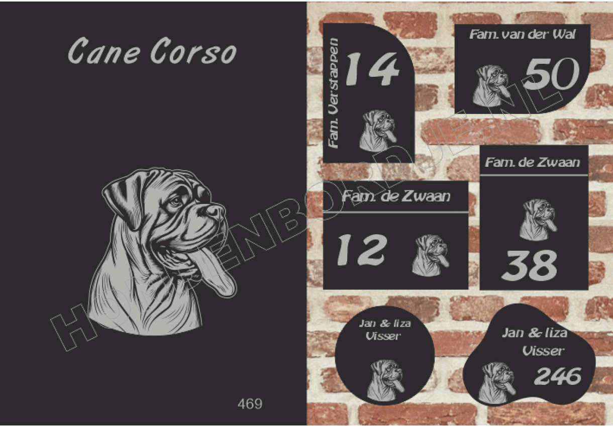 Gepersonaliseerd met naam en/of nummer, perfect als persoonlijke toevoeging aan je woning of als cadeau voor hondenliefhebbers.