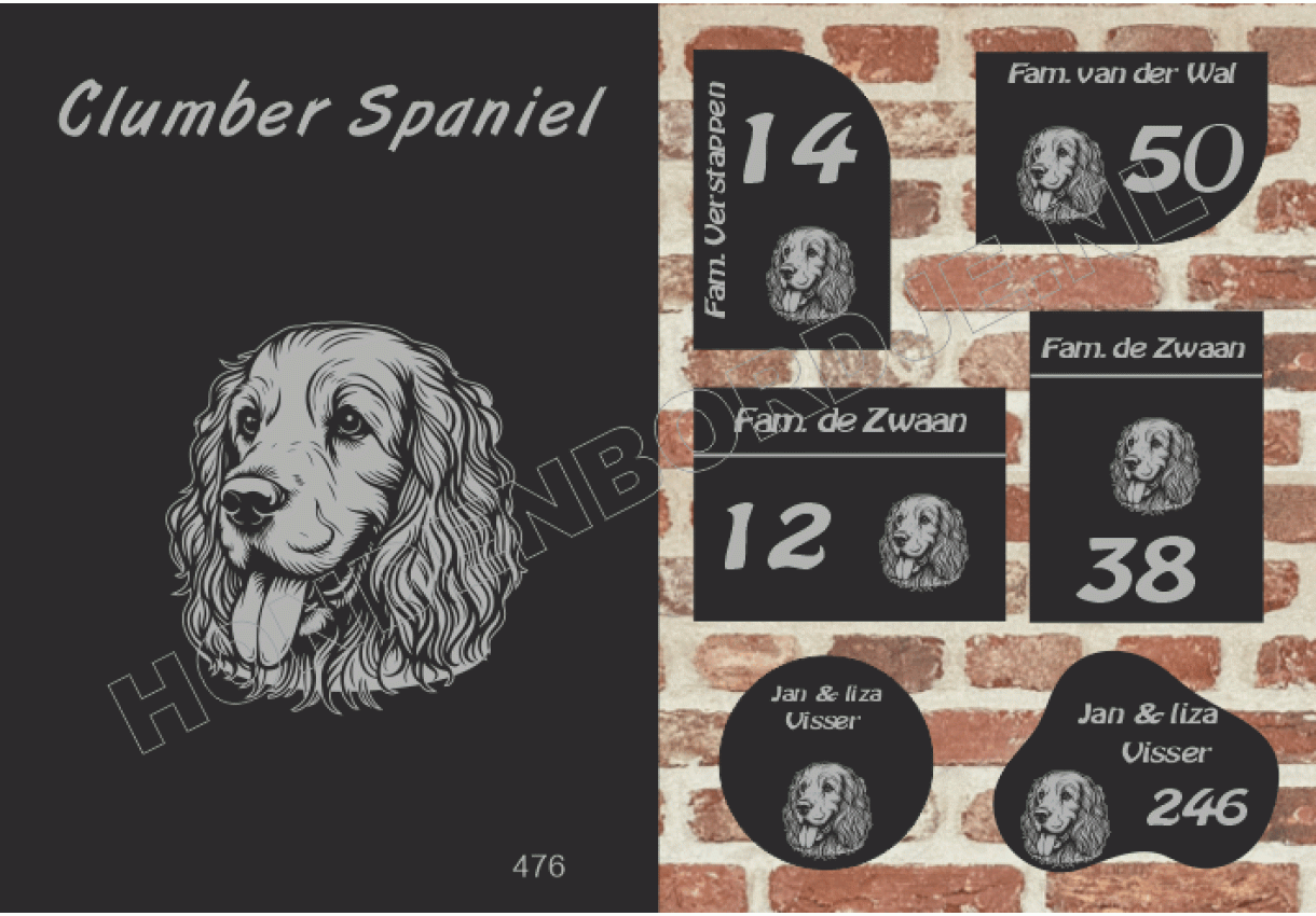 dit product is uitgesloten van het herroepingsrecht i.v.m. de persoonlijke aard.Naambord Clumber Spaniel