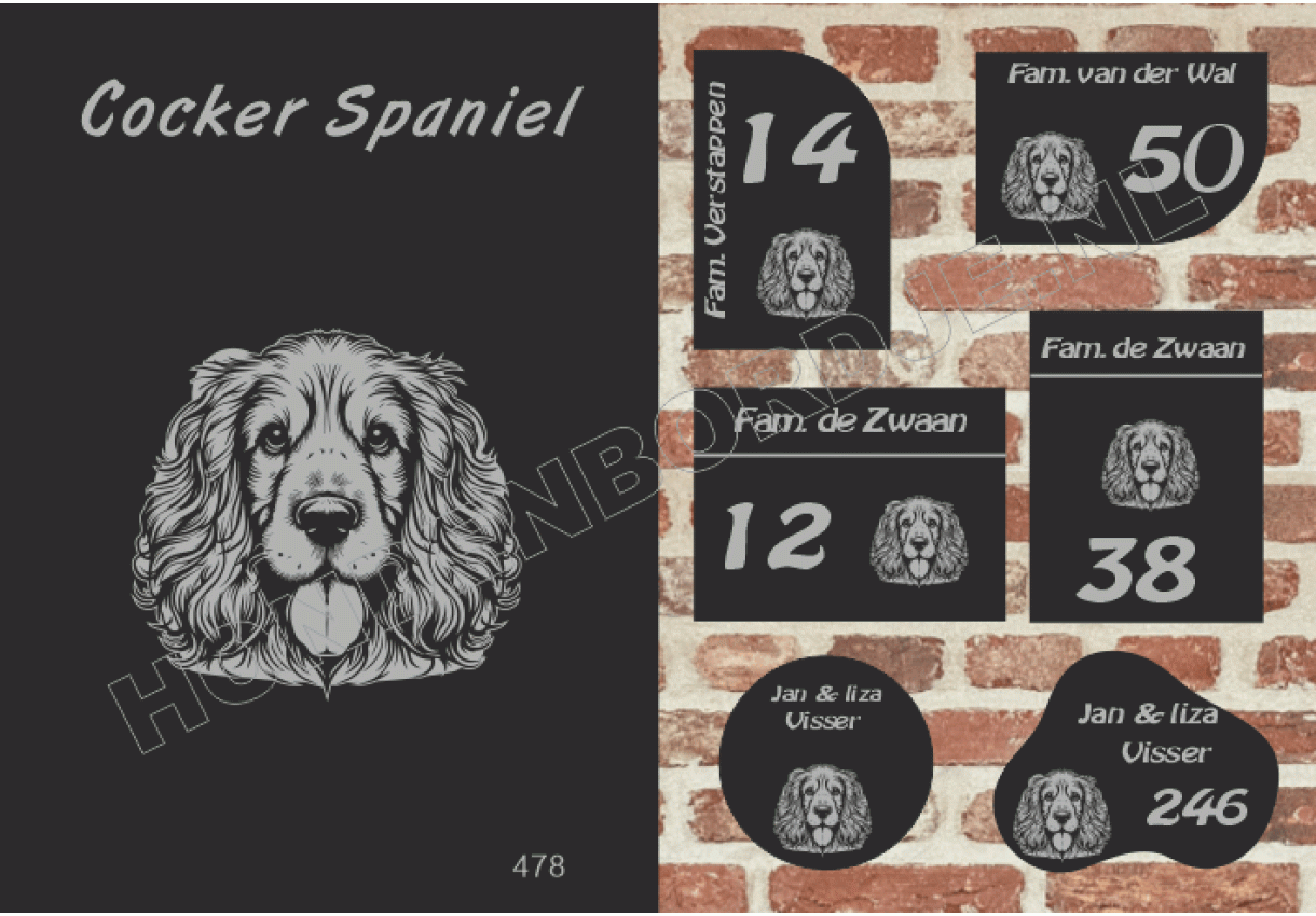 Naambord met Cocker Spaniel.