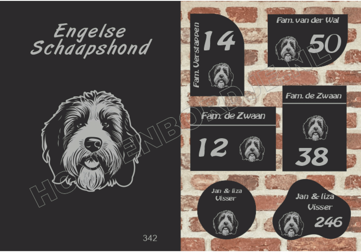 dit product is uitgesloten van het herroepingsrecht i.v.m. de persoonlijke aard.Naambord Engelse Schaapshond