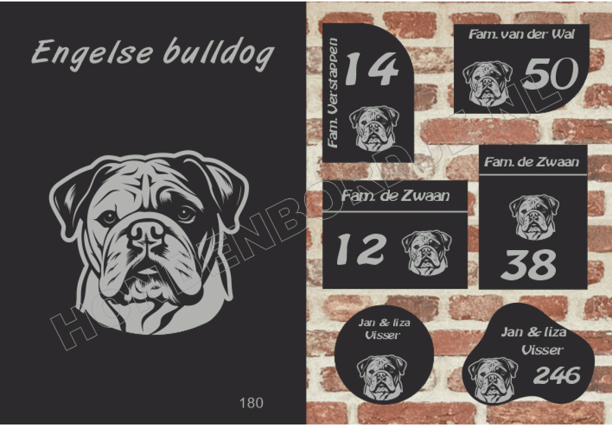 dit product is uitgesloten van het herroepingsrecht i.v.m. de persoonlijke aard.Naambord Engelse bulldog