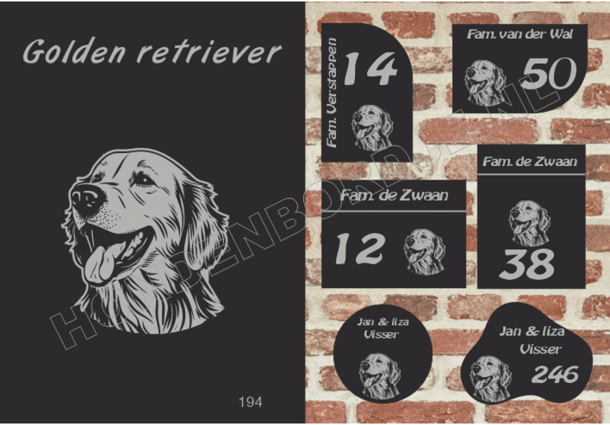 dit product is uitgesloten van het herroepingsrecht i.v.m. de persoonlijke aard.Naambord Golden retriever