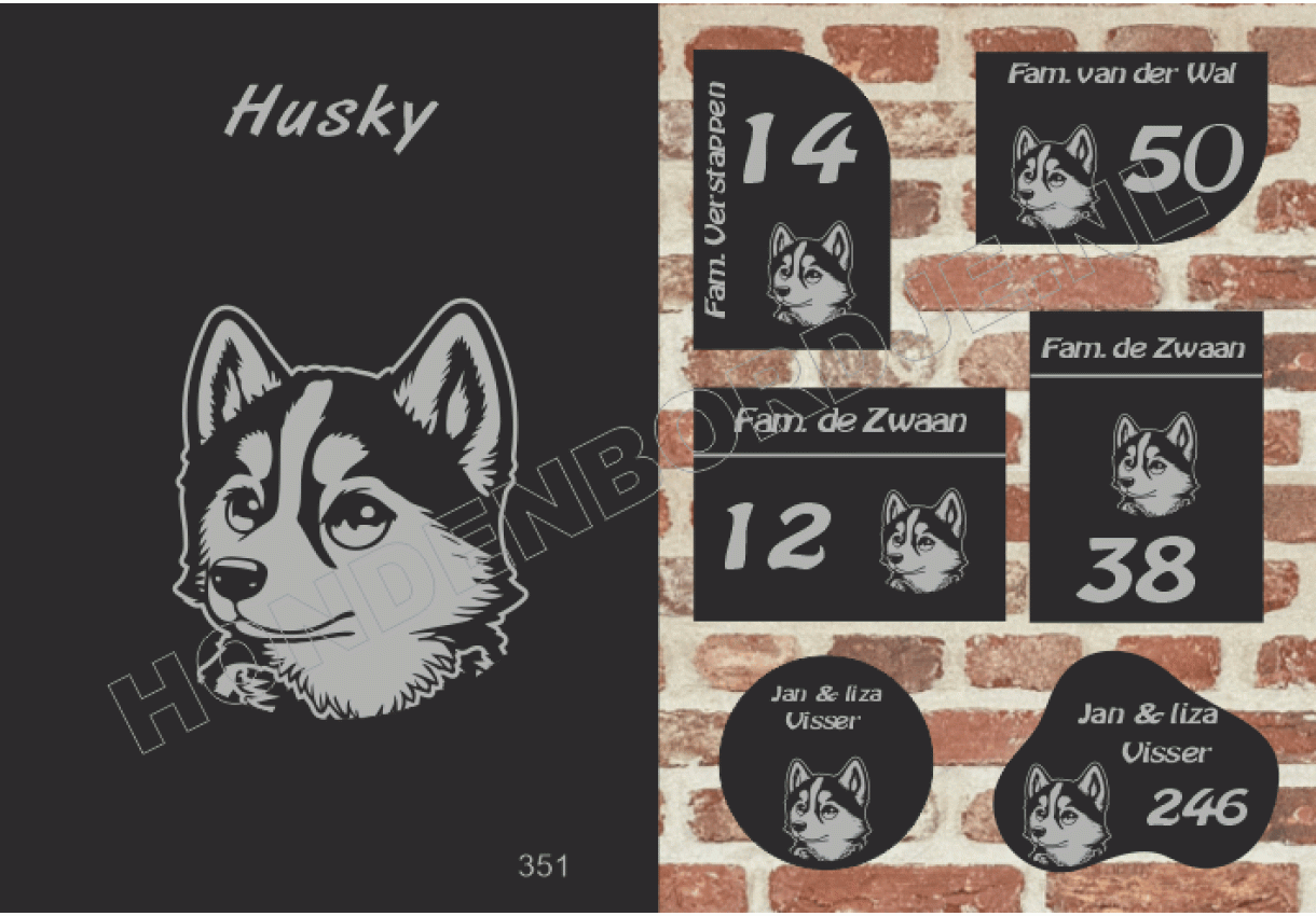 Naambord met Husky.