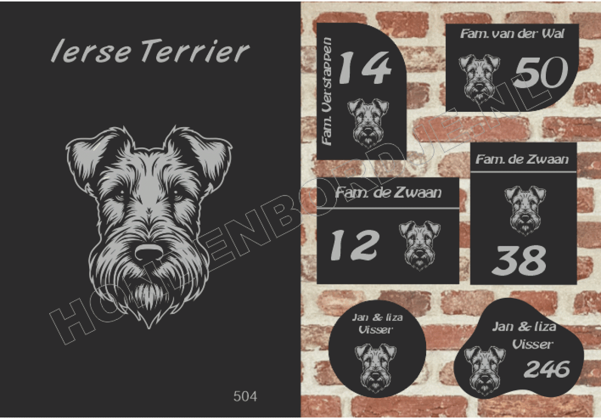 dit product is uitgesloten van het herroepingsrecht i.v.m. de persoonlijke aard.Naambord Ierse Terrier