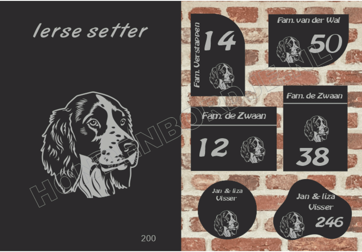 dit product is uitgesloten van het herroepingsrecht i.v.m. de persoonlijke aard.Naambord Ierse setter