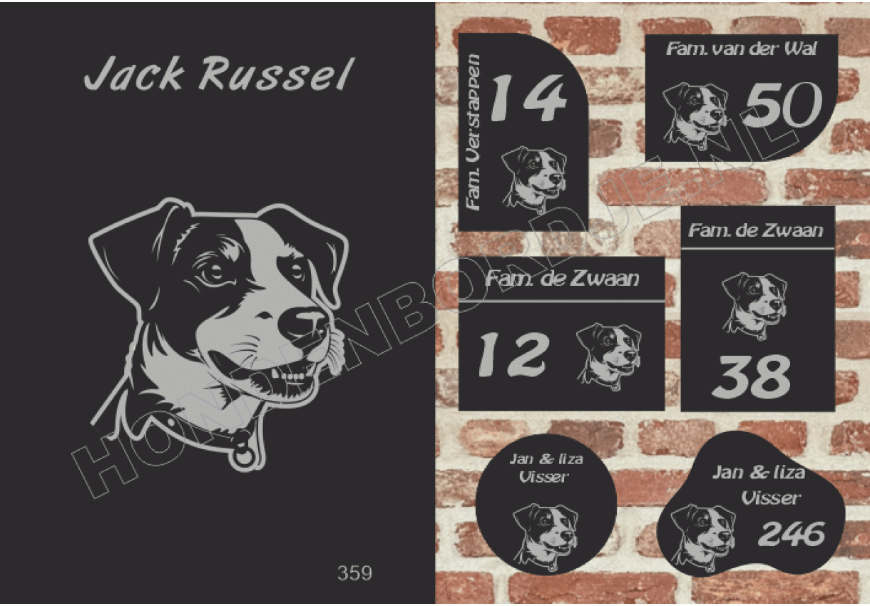 Naambord met Jack Russel.