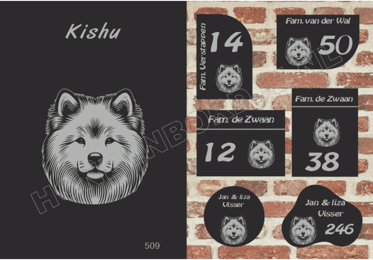 Naambord met Kishu.