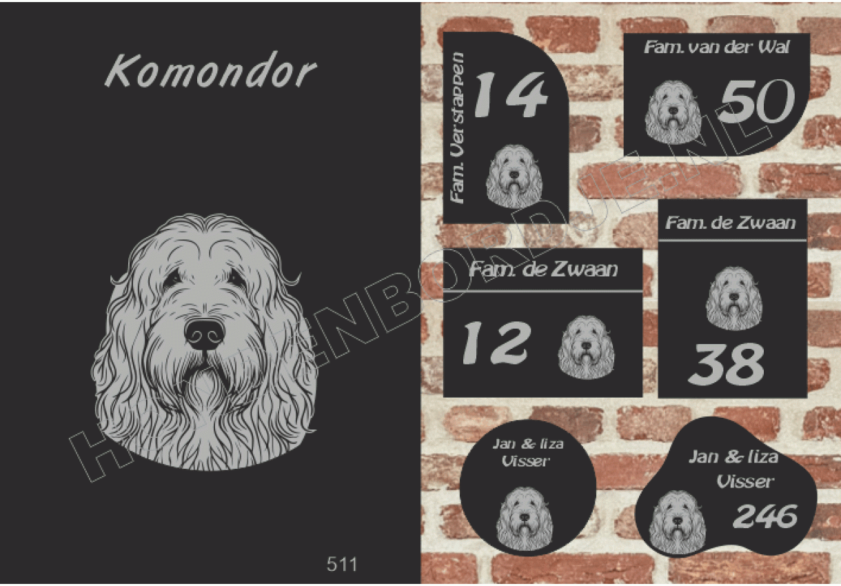 dit product is uitgesloten van het herroepingsrecht i.v.m. de persoonlijke aard.Naambord Komondor