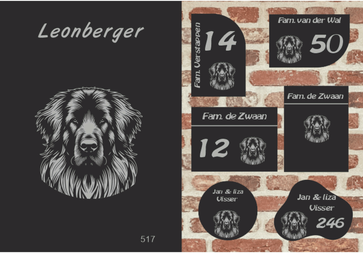 Gepersonaliseerd met naam en/of nummer, perfect als persoonlijke toevoeging aan je woning of als cadeau voor hondenliefhebbers.