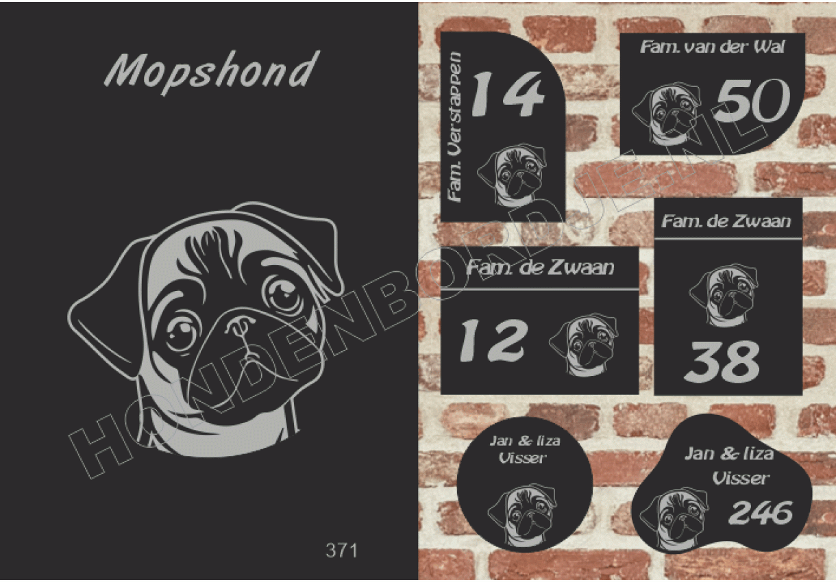 dit product is uitgesloten van het herroepingsrecht i.v.m. de persoonlijke aard.Naambord Mopshond