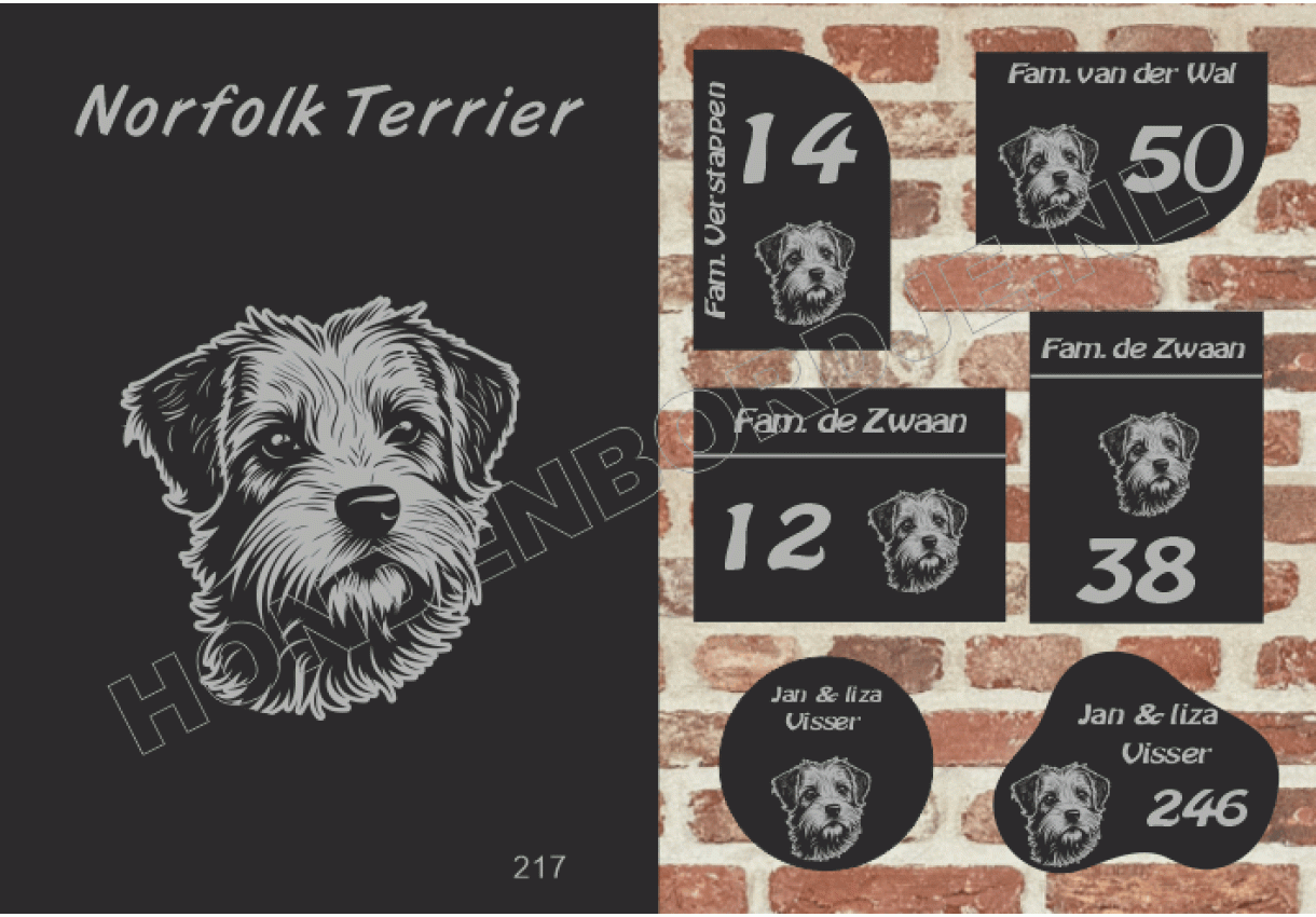 dit product is uitgesloten van het herroepingsrecht i.v.m. de persoonlijke aard.Naambord Norfolk Terrier