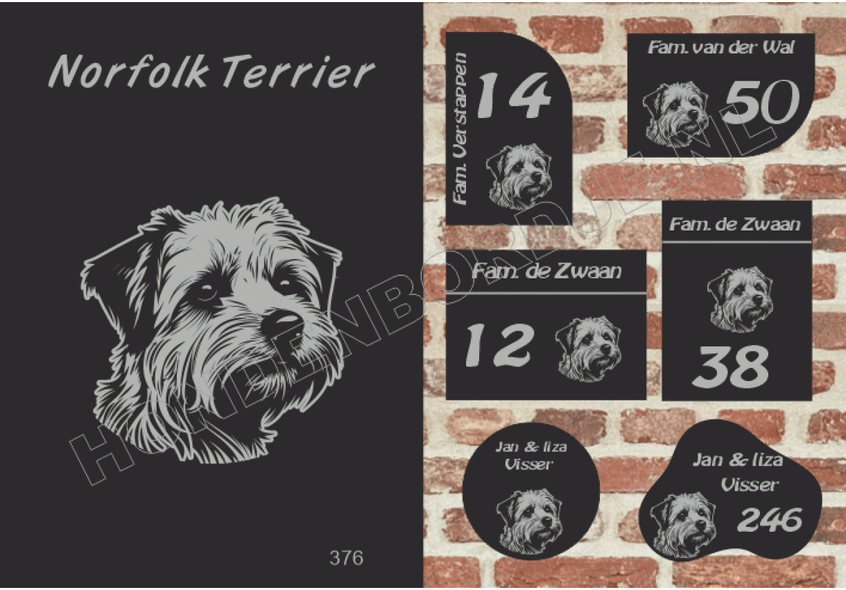 dit product is uitgesloten van het herroepingsrecht i.v.m. de persoonlijke aard.Naambord Norfolk Terrier
