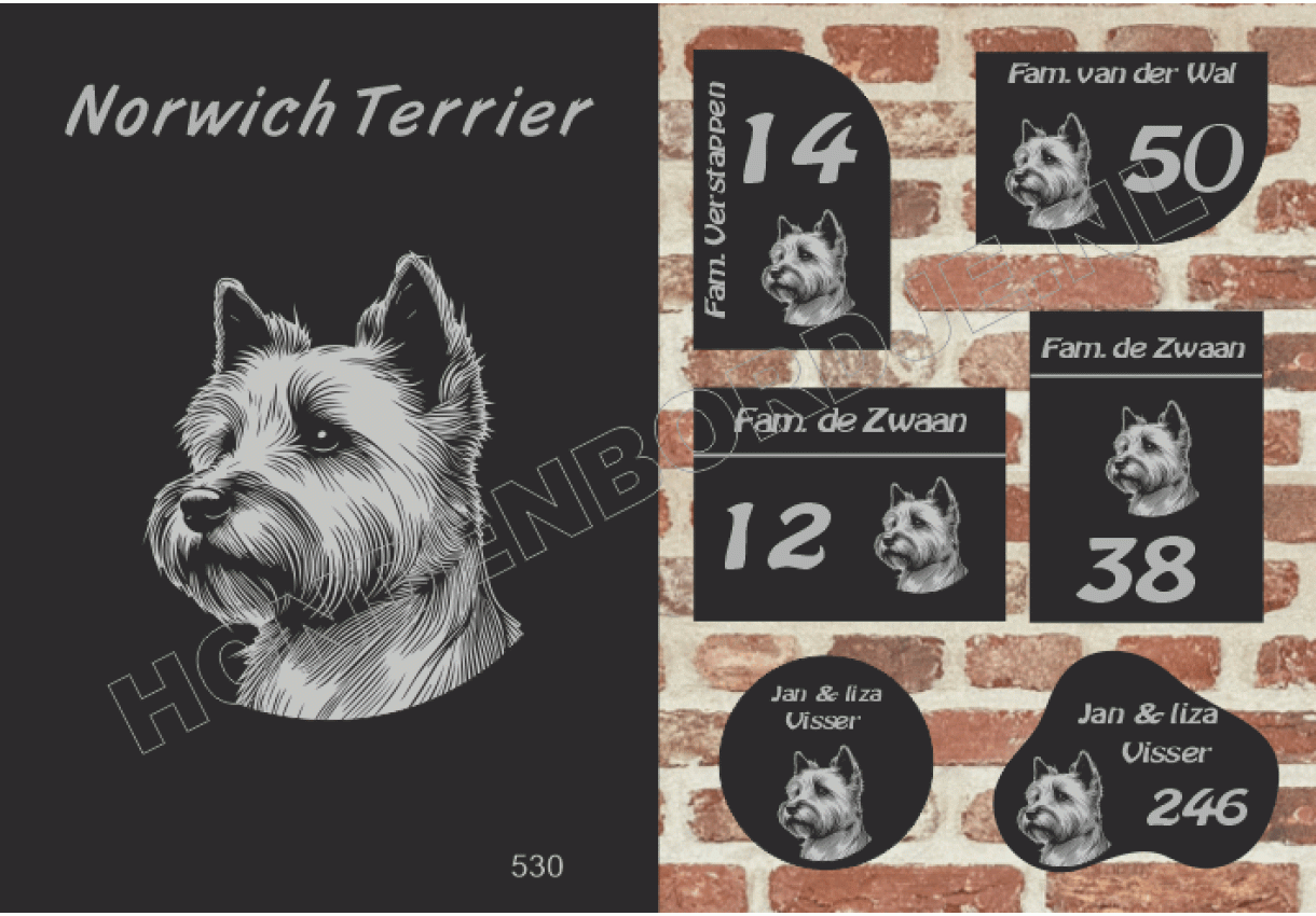 dit product is uitgesloten van het herroepingsrecht i.v.m. de persoonlijke aard.Naambord Norwich Terrier