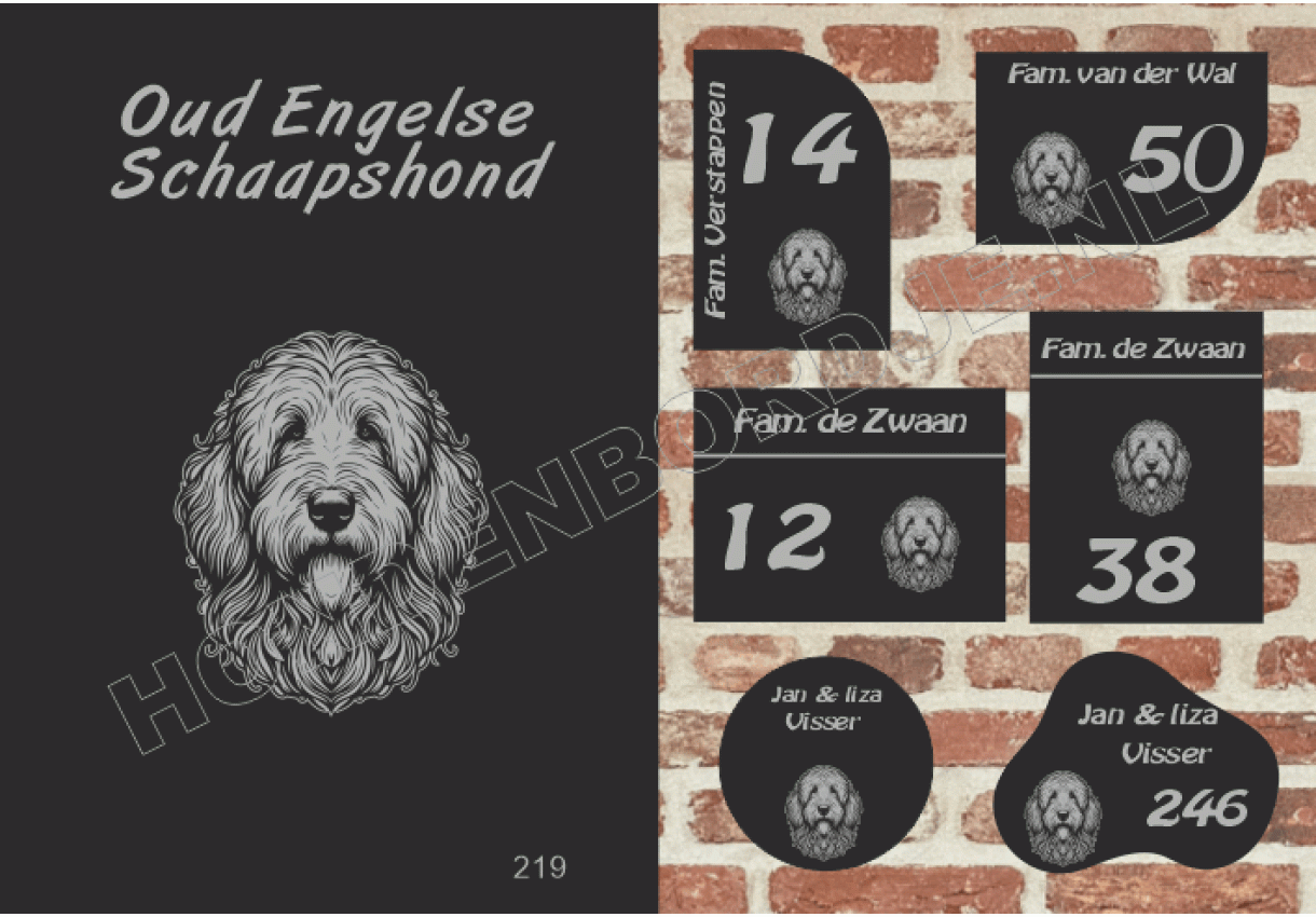 dit product is uitgesloten van het herroepingsrecht i.v.m. de persoonlijke aard.Naambord Oud Engelse Schaapshond