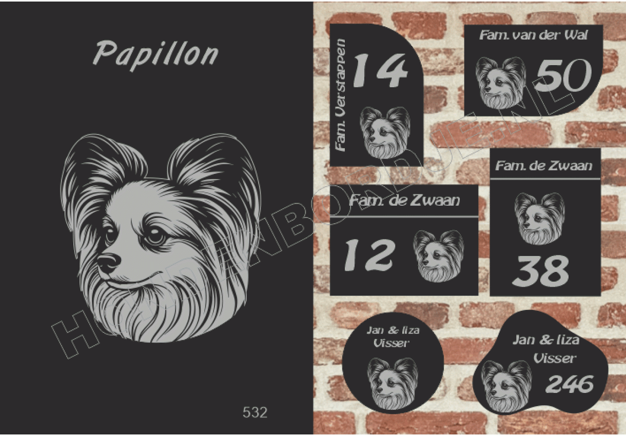 Gepersonaliseerd met naam en/of nummer, perfect als persoonlijke toevoeging aan je woning of als cadeau voor hondenliefhebbers.