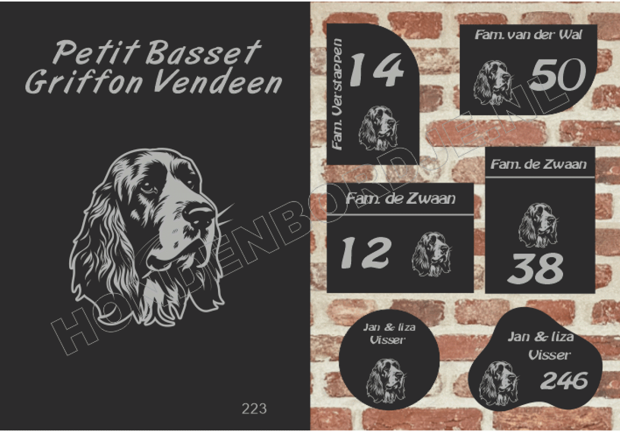 Naambord met Petit Basset Griffon Vendeen.