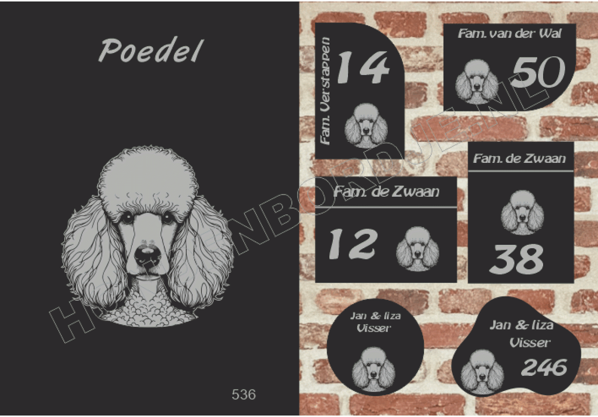Naambord met Poedel.