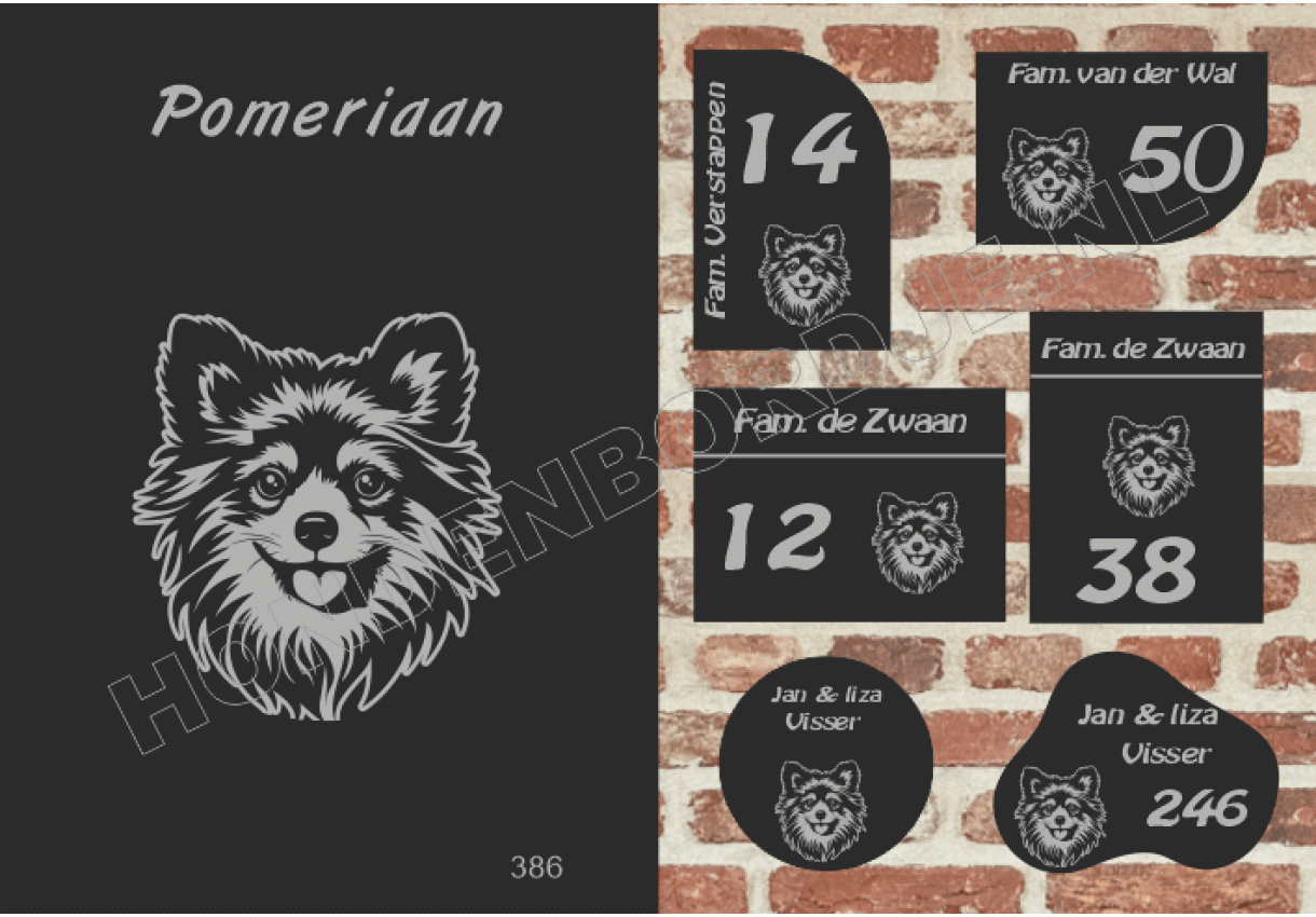 dit product is uitgesloten van het herroepingsrecht i.v.m. de persoonlijke aard.Naambord Pomeriaan