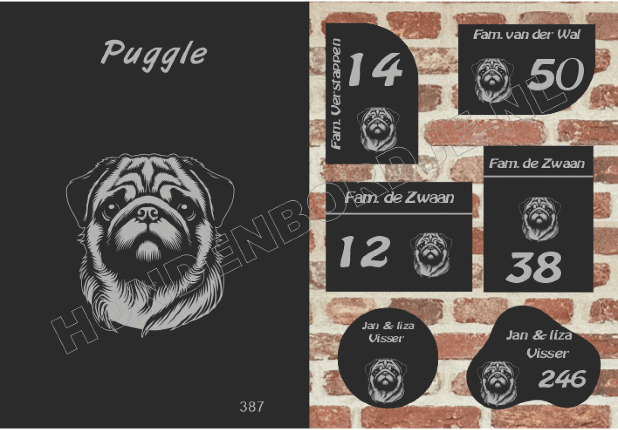 dit product is uitgesloten van het herroepingsrecht i.v.m. de persoonlijke aard.Naambord Puggle