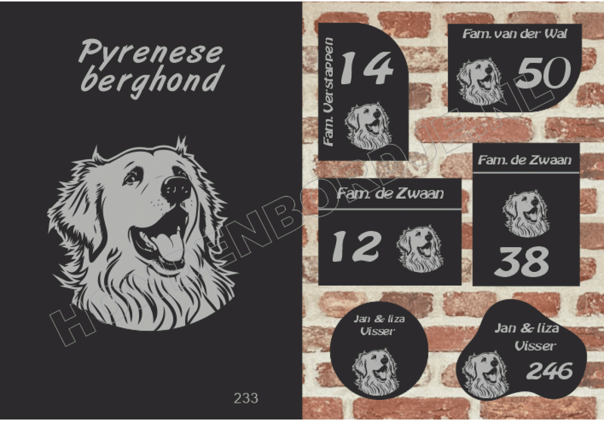 Gepersonaliseerd met naam en/of nummer, perfect als persoonlijke toevoeging aan je woning of als cadeau voor hondenliefhebbers.