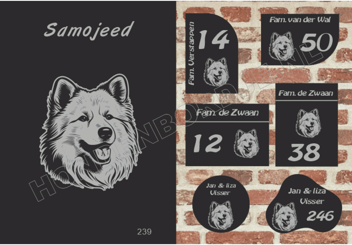 dit product is uitgesloten van het herroepingsrecht i.v.m. de persoonlijke aard.Naambord Samojeed