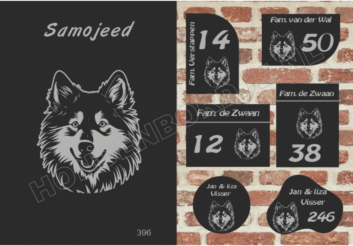 dit product is uitgesloten van het herroepingsrecht i.v.m. de persoonlijke aard.Naambord Samojeed