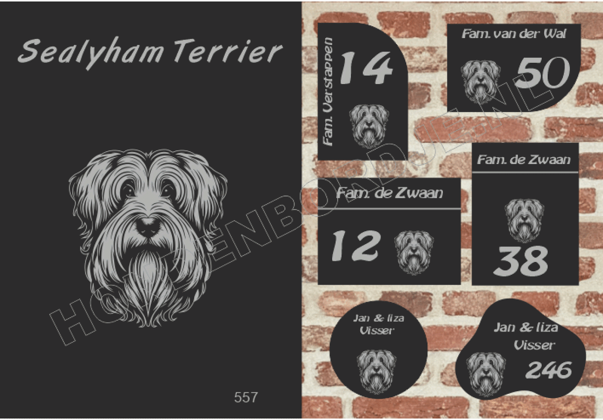 Naambord met Sealyham Terrier.