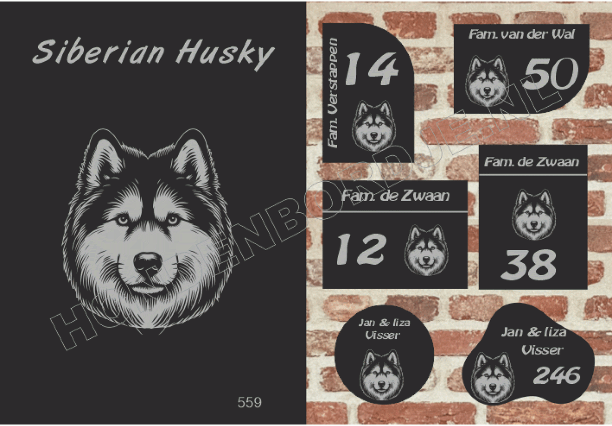 Gepersonaliseerd met naam en/of nummer, perfect als persoonlijke toevoeging aan je woning of als cadeau voor hondenliefhebbers.