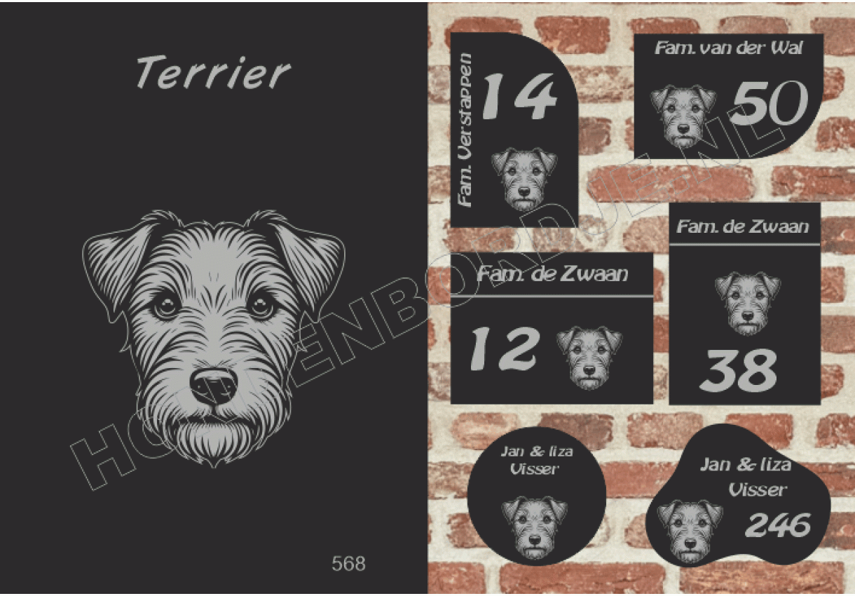 dit product is uitgesloten van het herroepingsrecht i.v.m. de persoonlijke aard.Naambord Terrier