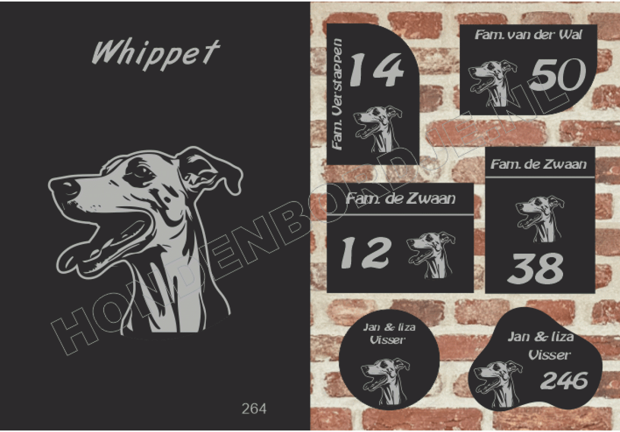 dit product is uitgesloten van het herroepingsrecht i.v.m. de persoonlijke aard.Naambord Whippet
