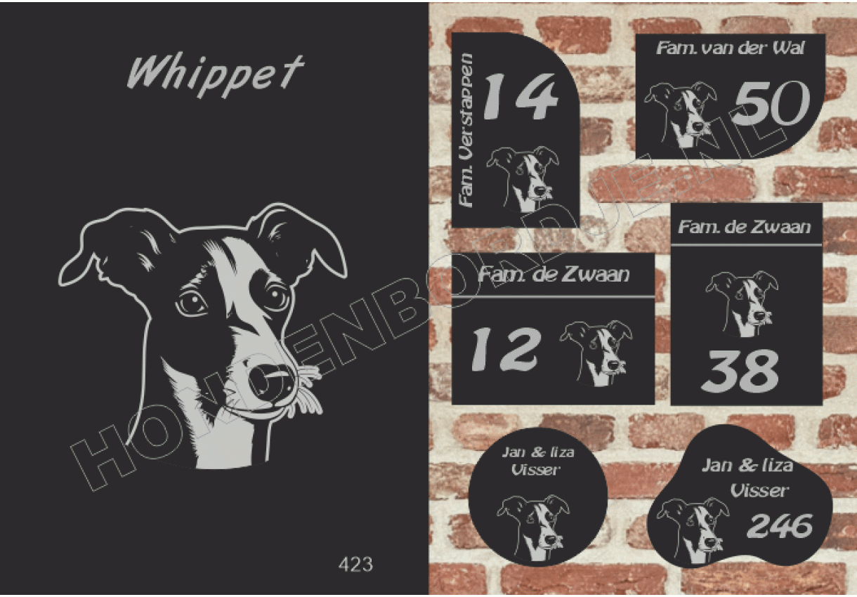 dit product is uitgesloten van het herroepingsrecht i.v.m. de persoonlijke aard.Naambord Whippet