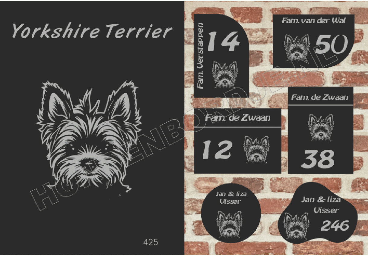 Naambord met Yorkshire Terrier.