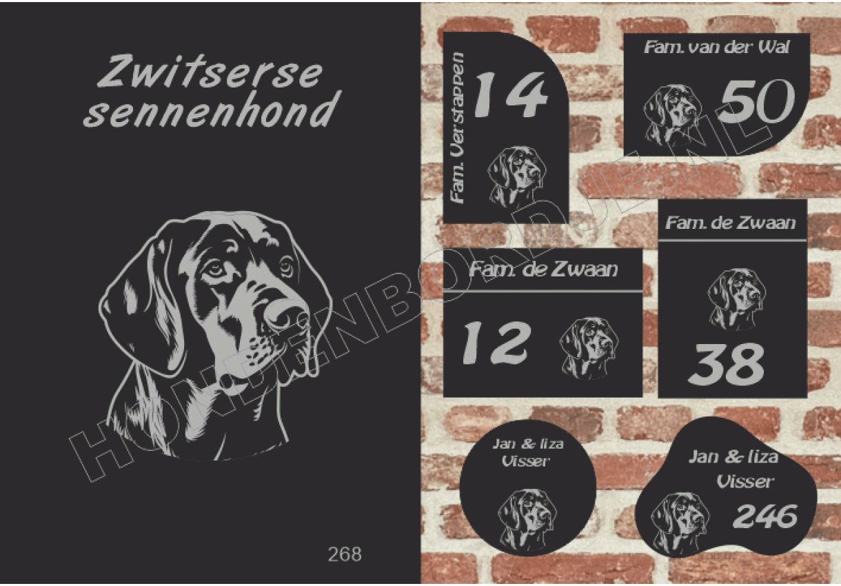 dit product is uitgesloten van het herroepingsrecht i.v.m. de persoonlijke aard.Naambord Zwitserse sennenhond